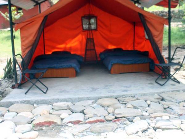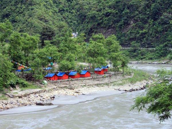 Trisulifloden passar bra även för dig som inte har forspaddlat tidigare, men om du inte är sugen på att paddla går det bra att hoppa över det och följa med minibussen till dagens slutmål – som är en egen campingplats med permanent uppställda tält. Här sover vi i tvåmanstält, och sovsäck och liggunderlag ingår.