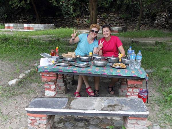 Vi ställer in siktet på Trisulifloden, för den första av två dagar med (valfri) forspaddling och fina naturupplevelser. Forspaddlingen arrangeras av ett företag som heter Adventure Aves, och deras professionella personal tar emot för en säkerhetsbriefing och träning innan det är dags att ge sig ut på floden.